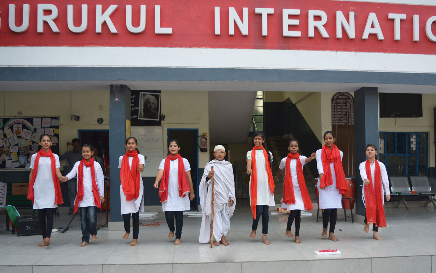 Gurukul International School celebrated Gandhi Jayanti and Shastri Jayanti with great zeal and zest. The students staged out plays on Mahatma Gandhi Ji’s life, The students also remarkably enacted on the campaign of our Prime Minister Mr. Modi “Clean India”. The Students performed dances, Harshit Joshi and Vama Sharma threw light on the life of Gandhi Ji and Shastri Ji respectively, Mrs. Preeti Joshi informed students about the contribution of two great Leaders. At the end of the program Mrs. Ekta Sah conducted quiz contest for teachers and students.