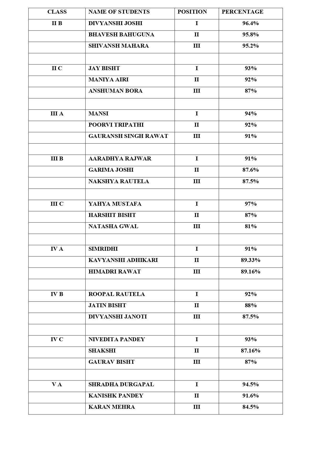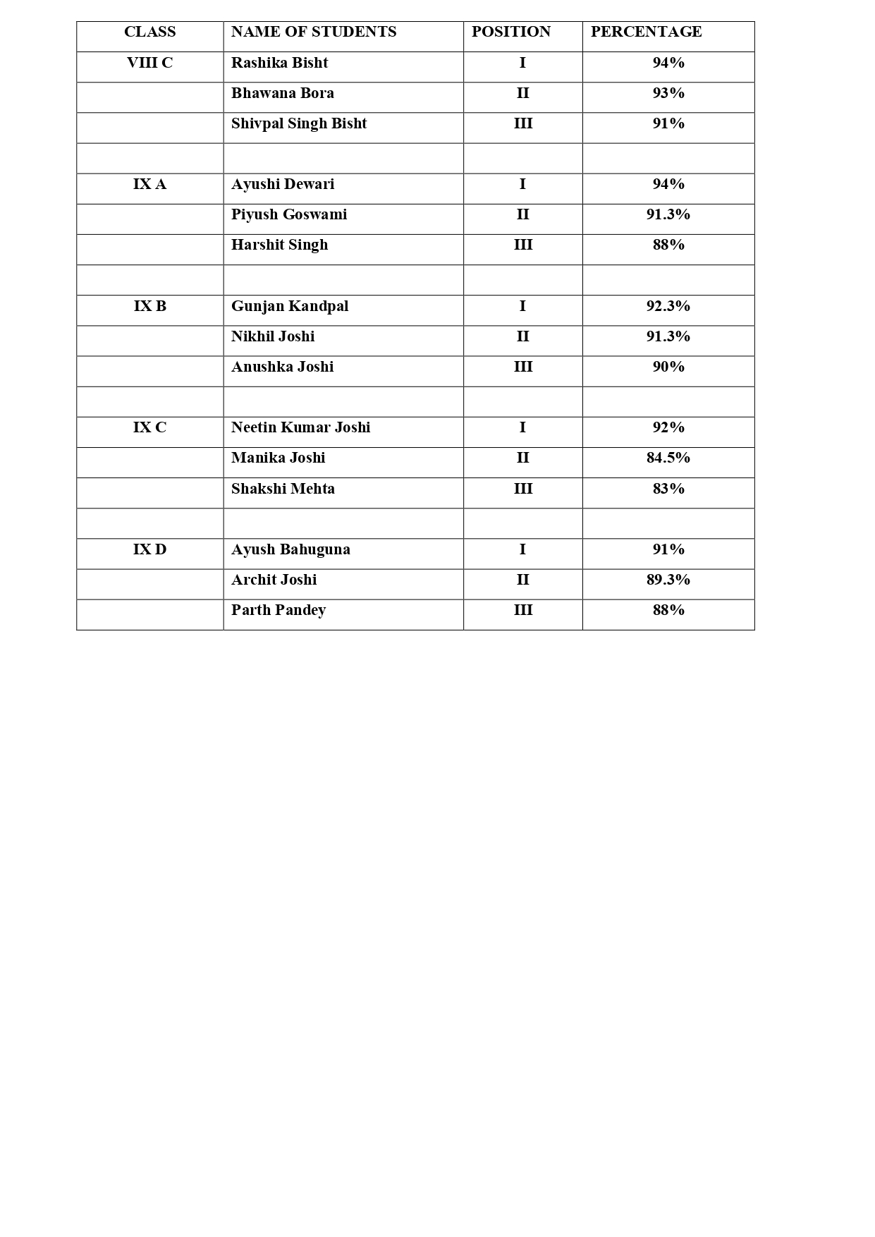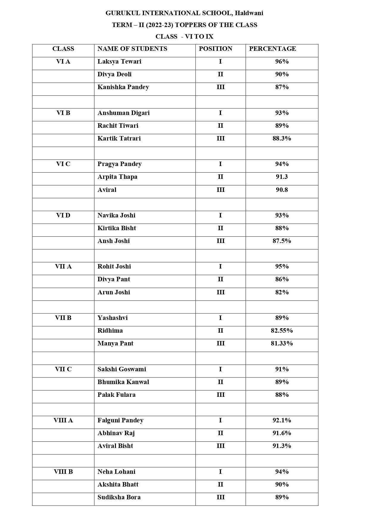 Toppers 2022-23, Class Nursery to IX