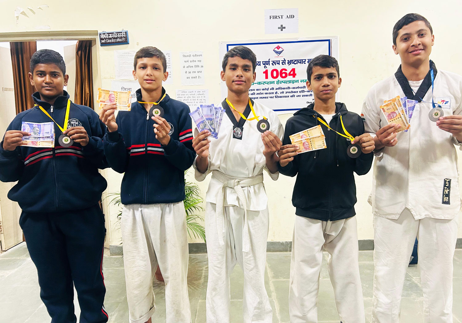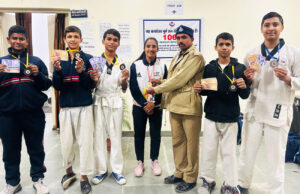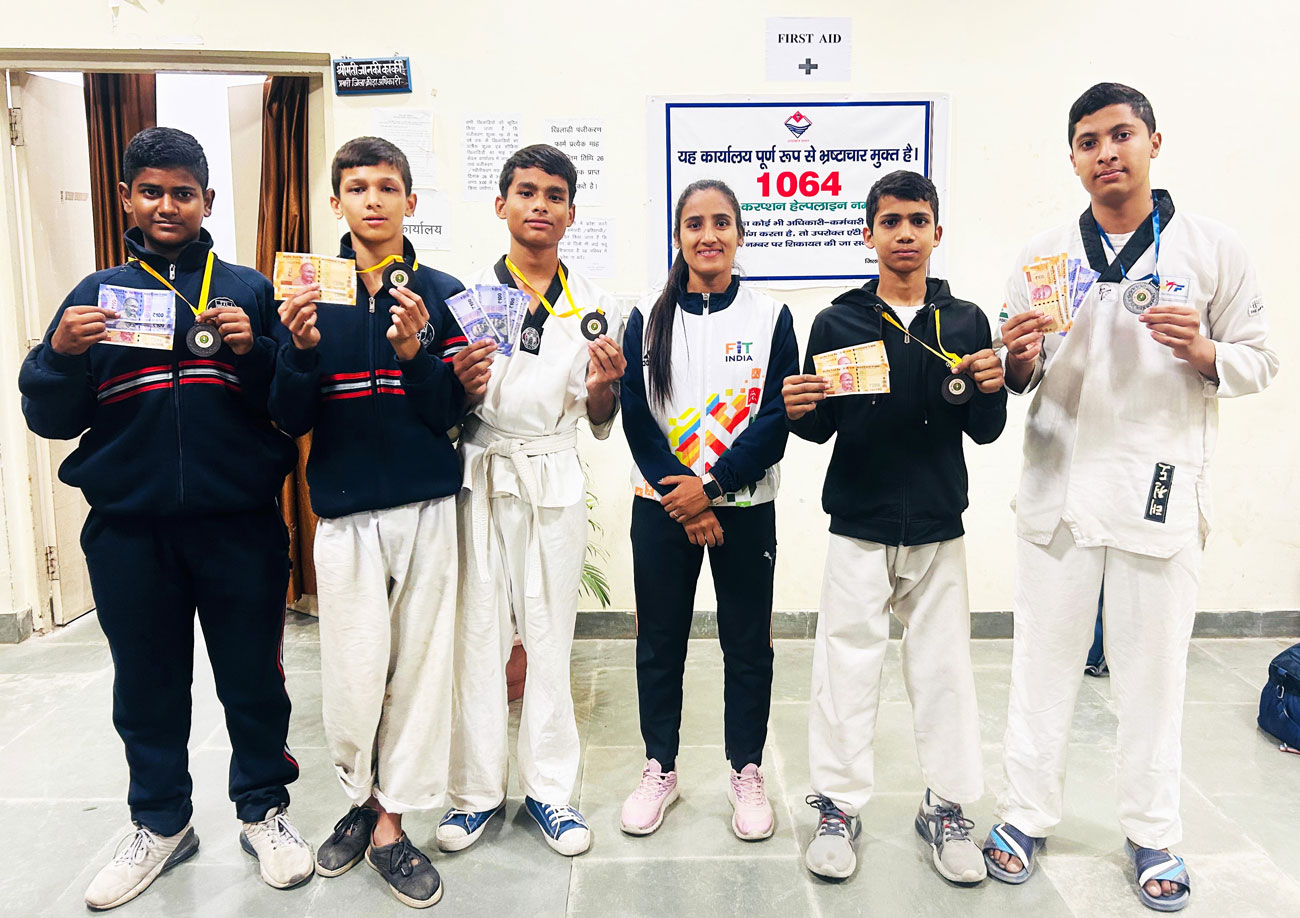 Date 12/12/2023 to 13/12/2023 Under Khel Mahakumbh 2023, boys and girls of Taekwondo under category (14/17/19) participated in the competition in Mini Stadium of Haldwani, participants from different schools participated in the competition out of which boys and girls of Gurukul School competed in different weight categories and received medals. 1- Divyanshi Negi Silver Medal 2- Himanshu Rautela Silver Medal 3- Lokesh Tiwari Bronze Medal 4- Manish Bisht Bronze Medal 5- Yug Rawat Bronze Medal 6- Tanmay Dasila Kasya Pad 7- Priyanshu Bronze Medal. Students brought glory to the school by winning the Medals.