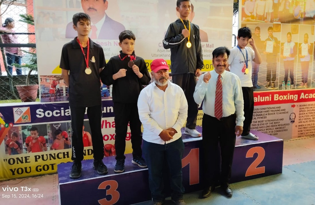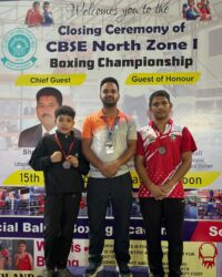 Gurukul International School bagged 2 medals in North Zone I Boxing Championship organized by C.B.S.E held from 11.09.2024 to 15.09.2024 in Dehradun. In boys category (Under 14 boys 38-40 kg) – Kartik Karki (Class VII-B) and (Under 17 boys 70-75 kg) – Divyanshu Singh Deopa (Class XI-C) bagged Bronze medal.