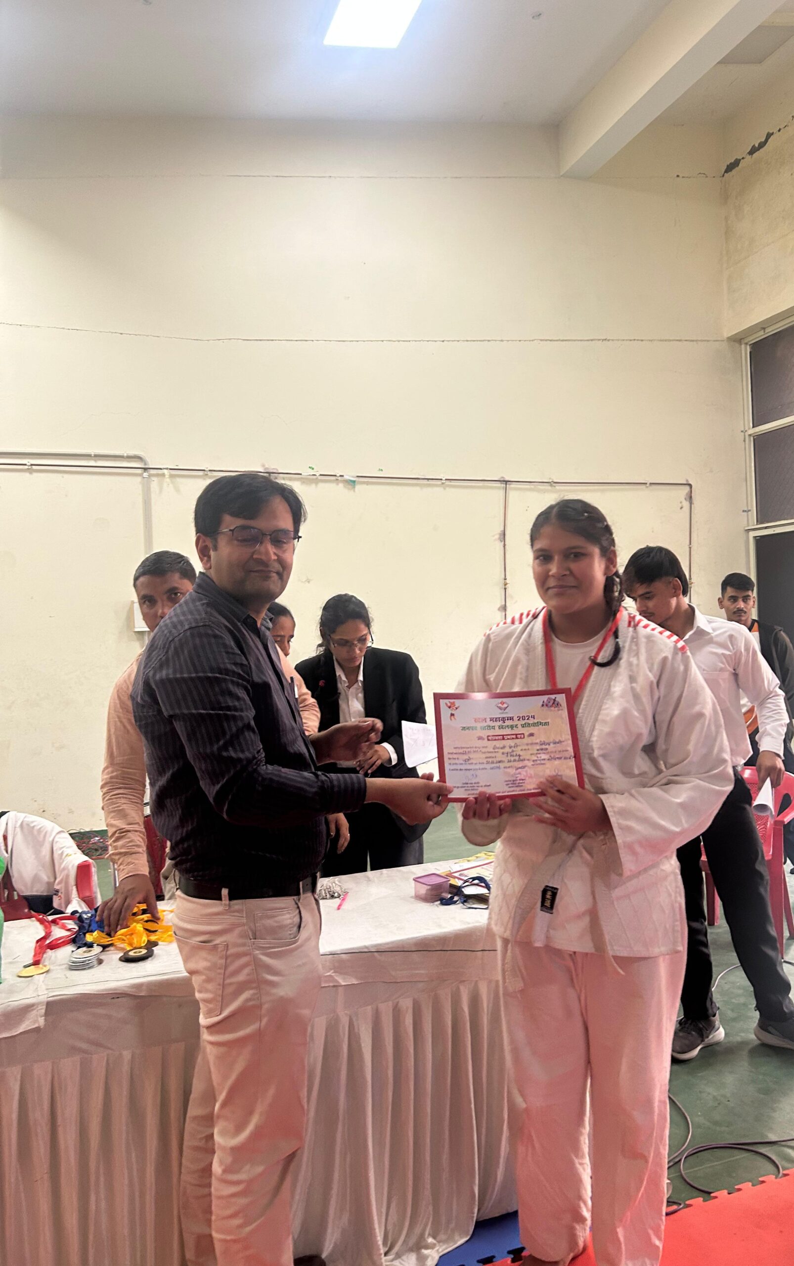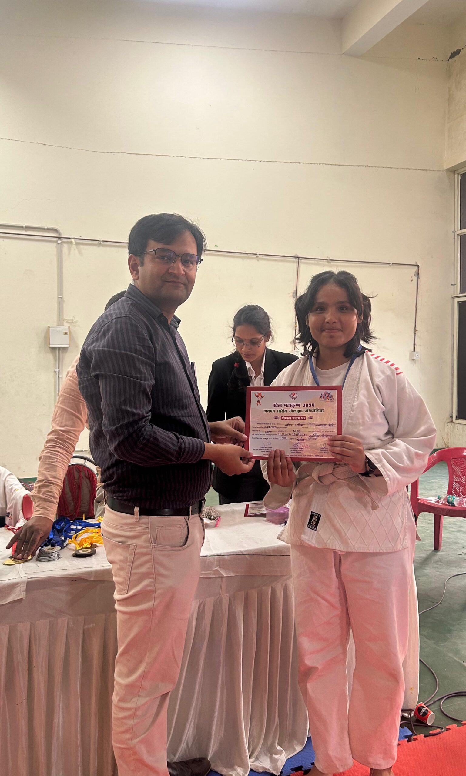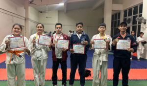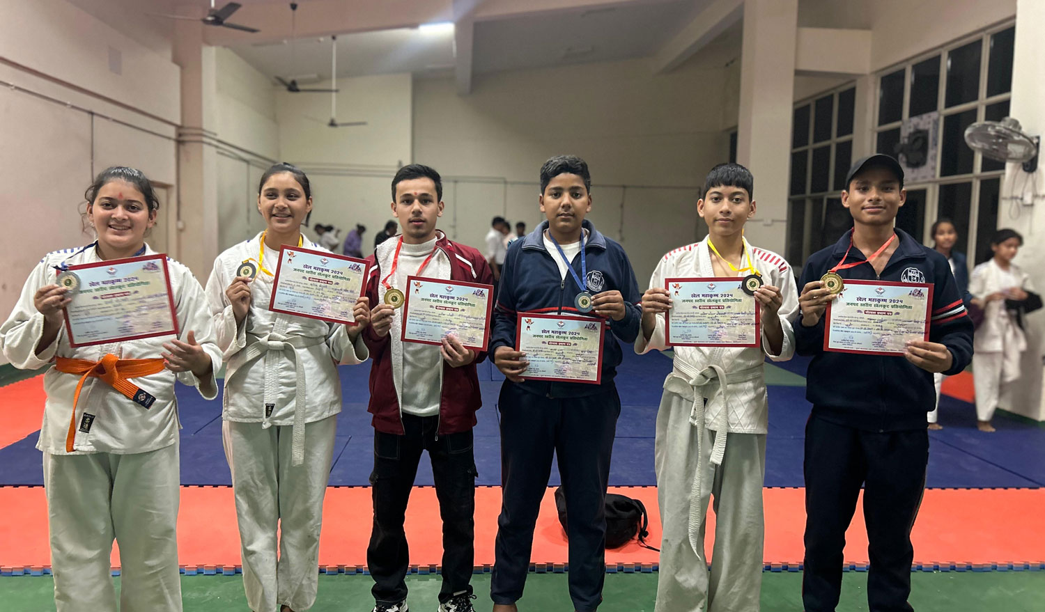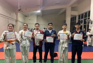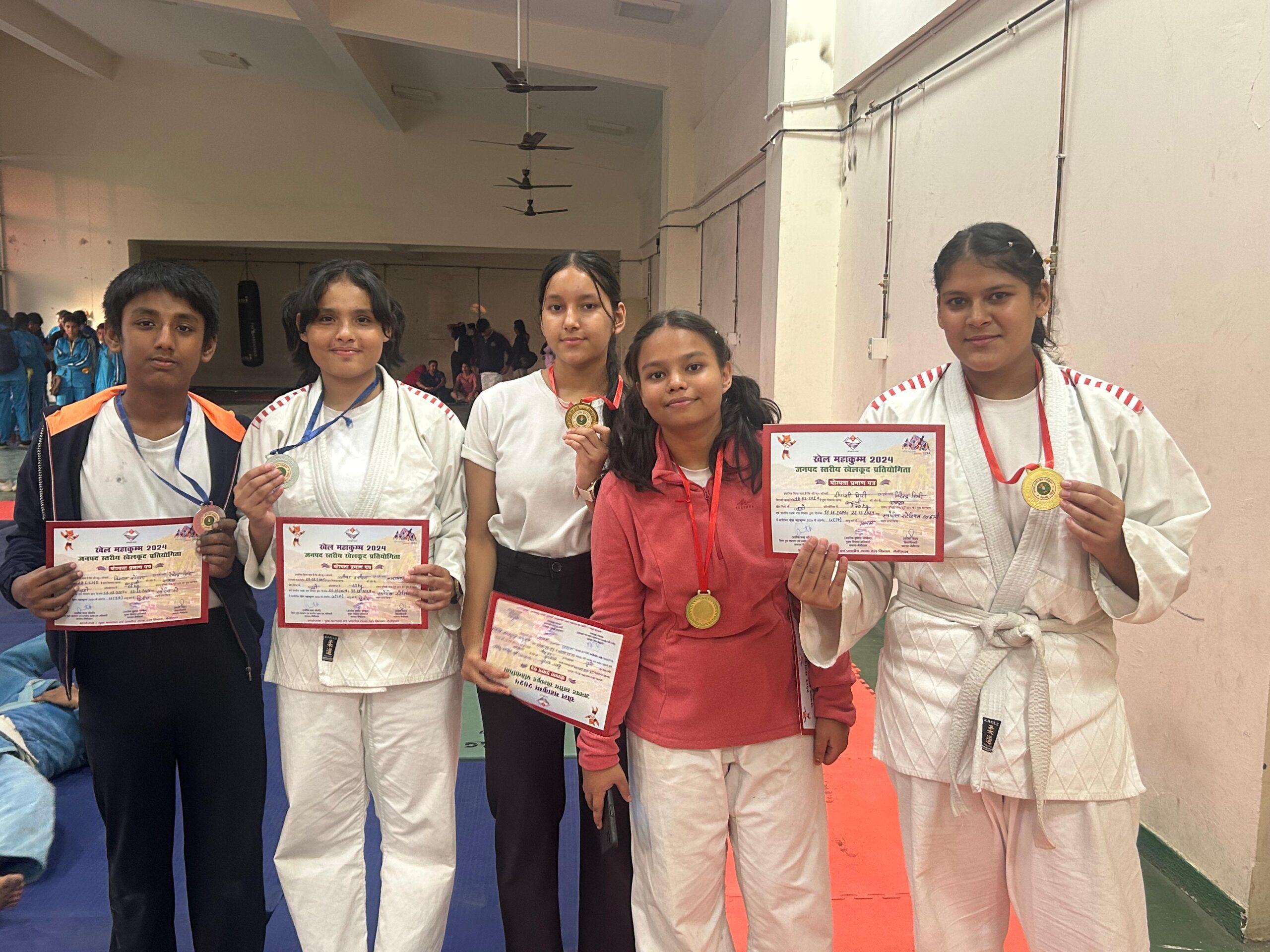 Date 11/11/2024 to 15/11/2024 Under Khel Mahakumbh 2024, boys and girls of Karate, Judo and Taekwondo under category (14/17/19/20) participated in the competition in Mini Stadium of Haldwani, participants from different schools participated in the competition out of which boys and girls of Gurukul School competed in different weight categories and received medals. Karate- 1- Yug Rawat (Class- 9 B) U-14 Gold (Selected for State Tournament) 2- Monika Aswal (Class- 7 A) U-14 Silver 3- Ayush Singh (Class- 8 A) U-14 Bronze 4- Rishika Koranga (Class- 6 C) U-14 Bronze 5- Kanika Joshi (Class- 12 A) U-20 Gold (Selected for State Tournament) Judo- 1- Deepanshi Giri (Class- 10 B) U-17 Gold (Selected for State Tournament) 2- Divyanshi Negi (Class- 10 C) U-17 Gold (Selected for State Tournament) 3- Isha Dhami (Class- 12 A) U-20 Gold (Selected for State Tournament) 4- Prateek Joshi (Class- 8 D) U-14 Gold (Selected for State Tournament) 5- Tanmay Dasila (Class- 9 D) U-14 Gold (Selected for State Tournament) 6- Vishal Koranga (Class- 9 A) U-17 Silver 7- Lalit Goswami (Class- 8 D) U-14 Silver 8- Varun (Class- 8 D) U-14 Silver 9- Gayatri Goswami (Class-9 B) U-14 Silver 10- Tanisha Dasila (Class- 12 A) U-17 Silver 11- Kritika Goswami (Class-9 B) U-14 Bronze Taekwondo- 1- Lokesh Tiwari (Class- 7 C) U-14 Bronze 2- Bhawesh Koranga (Class- 9 A) U-14 Bronze Boxing- 1- Anuj Kohli (Class- 9 B) U-14 Bronze.