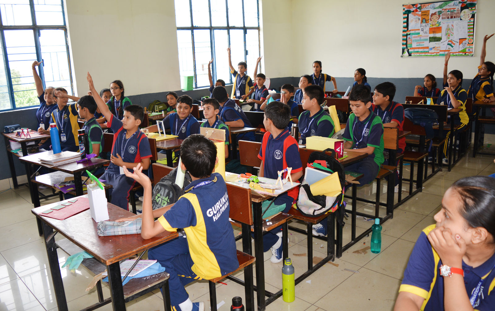 Gurukul observed bag less Day for class VI to VIII with objective to enhance critical thinking, decision making skills, problem solving skills and creative skills. The activities the students carried out were related to creativity for enhancing various skills. The activities involved, debating, extempore skit, mime, dance, games, craft work, art work, robotic, brain games, science projects etc.