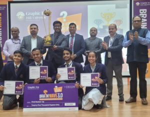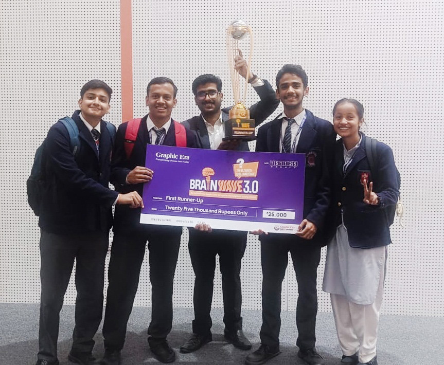We are delighted to share that Gurukul International School students Neetin Kumar Joshi, Divyanshi Shahi, Ayush Bahuguna and Abhas Ranjan emerged as the runner-up of the Brain Wave 3.0 Quiz Competition, organised by Graphic Era Hill University, Haldwani campus, and have been awarded a cash prize of Rs. 25,000 and trophy. Heartiest congratulations to our brilliant achievers for this outstanding accomplishment.