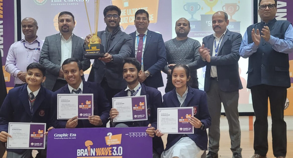 Latest Events By webadmin November 17, 2025 We are delighted to share that Gurukul International School students Neetin Kumar Joshi, Divyanshi Shahi, Ayush Bahuguna and Abhas Ranjan emerged as the runner-up of the Brain Wave 3.0 Quiz Competition, organised by Graphic Era Hill University, Haldwani campus, and have been awarded a cash prize of Rs. 25,000 and trophy. Heartiest congratulations to our brilliant achievers for this outstanding accomplishment. [gallery link="file" size="medium" ids="38123,38125,38124,38126"] Continue Reading
