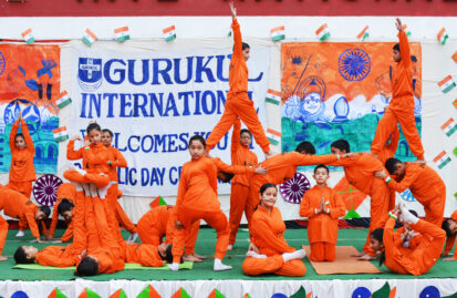 Gurukul International School students on 38th National Games at Indira Gandhi Stadium Haldwani (Nainital).
