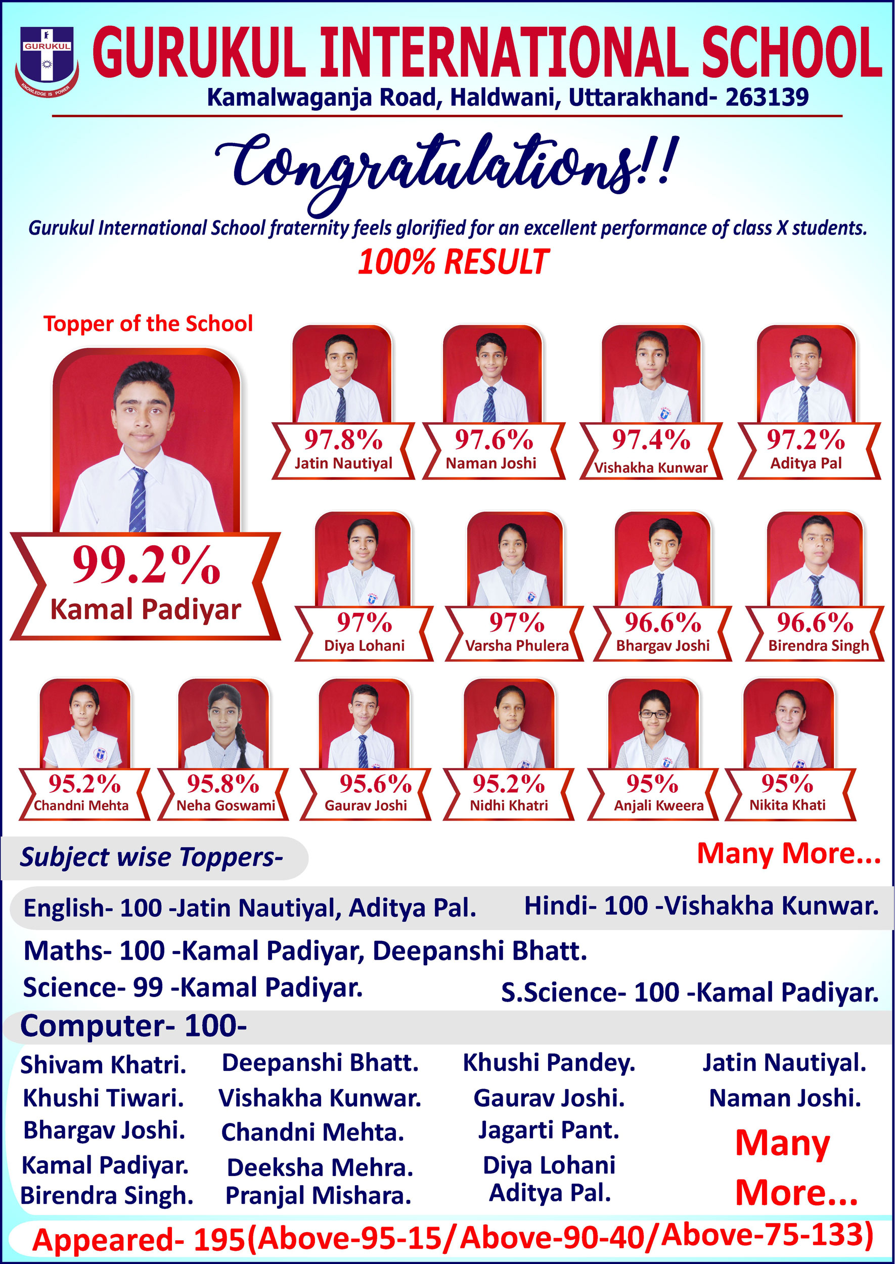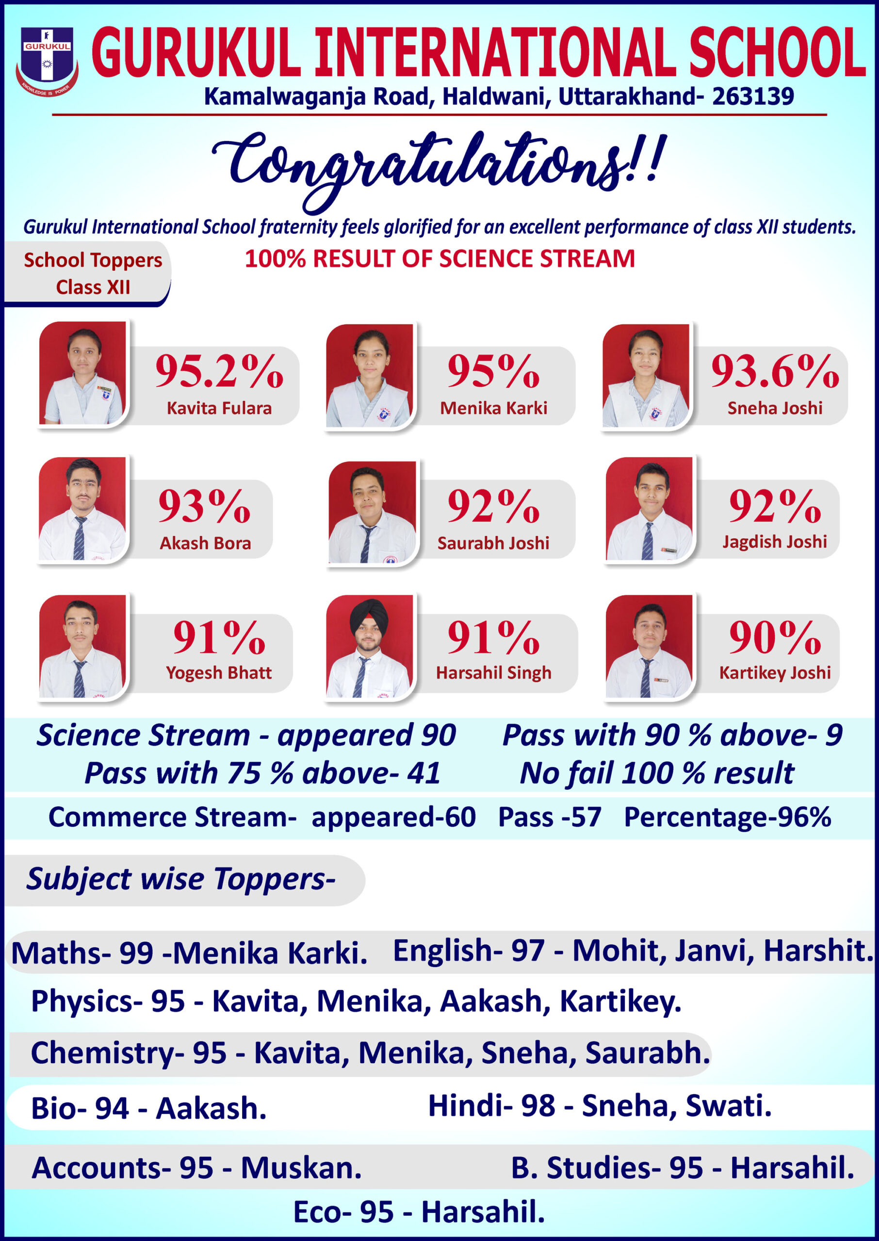 Gurukul International School fraternity feels glorified for an excellent performance of class X and XII students.